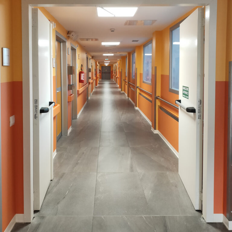Ospiti fragili e operatori sanitari devono potersi muovere e operare in sicurezza e in tranquillità, con superfici che proteggono e sono semplici da pulire per evitare la proliferazione di germi e batteri.