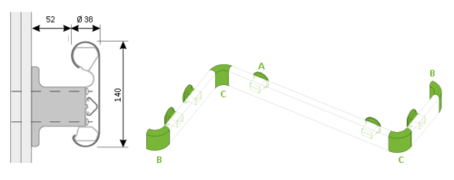 The product is available with several accessories to offer a sturdy and continuous sustain bar, able to absorb impacts, the inner aluminium frame has a cushioning layer used to absorb impacts, both to preserves walls and also to guarantee the maximum sustain.