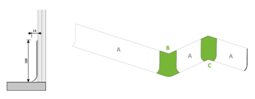 SK.100 protective skirting in Life-Blend®, with sanitary, non-toxic, antibacterial shell floor/wall connection, 100 mm high.